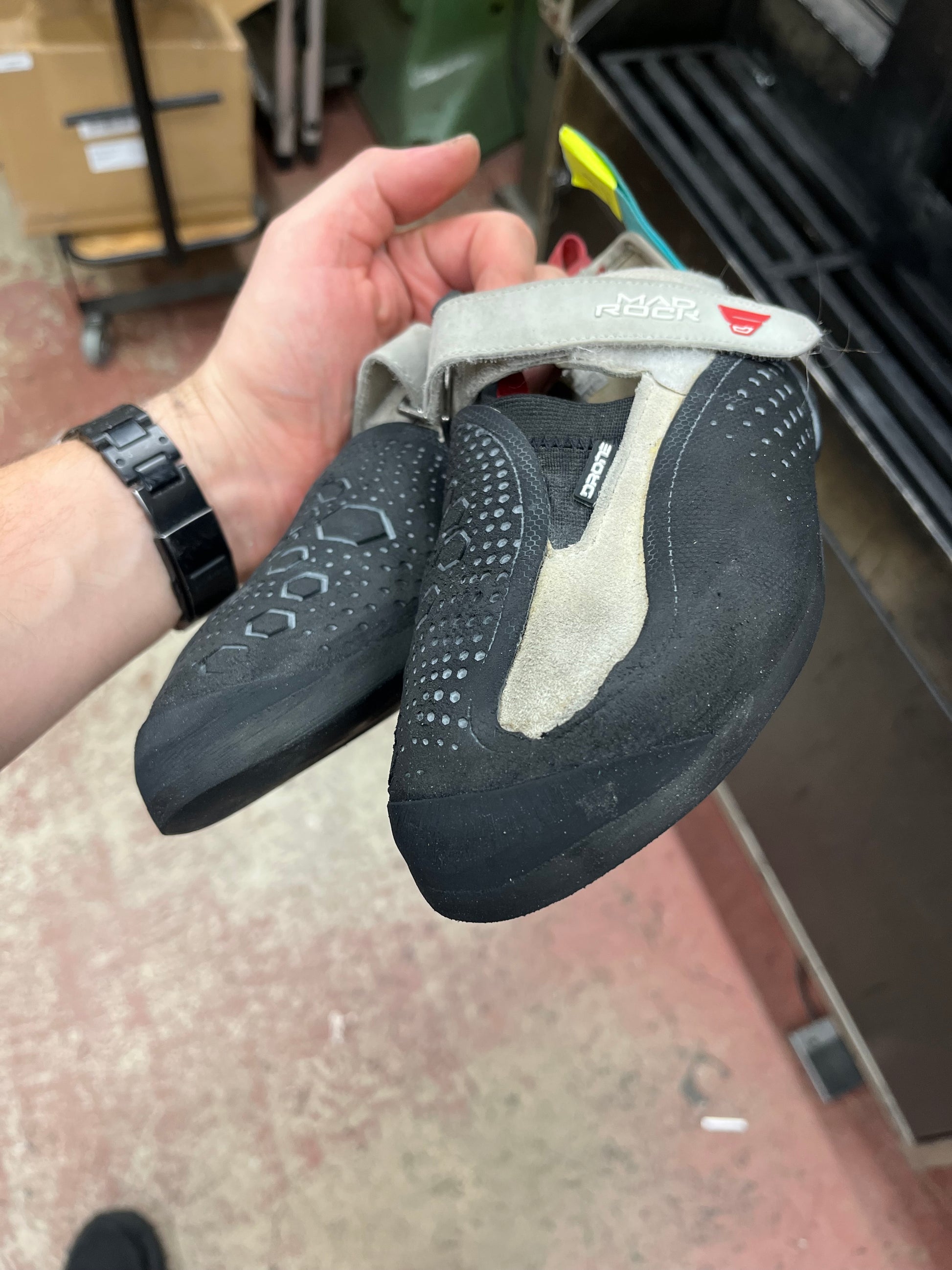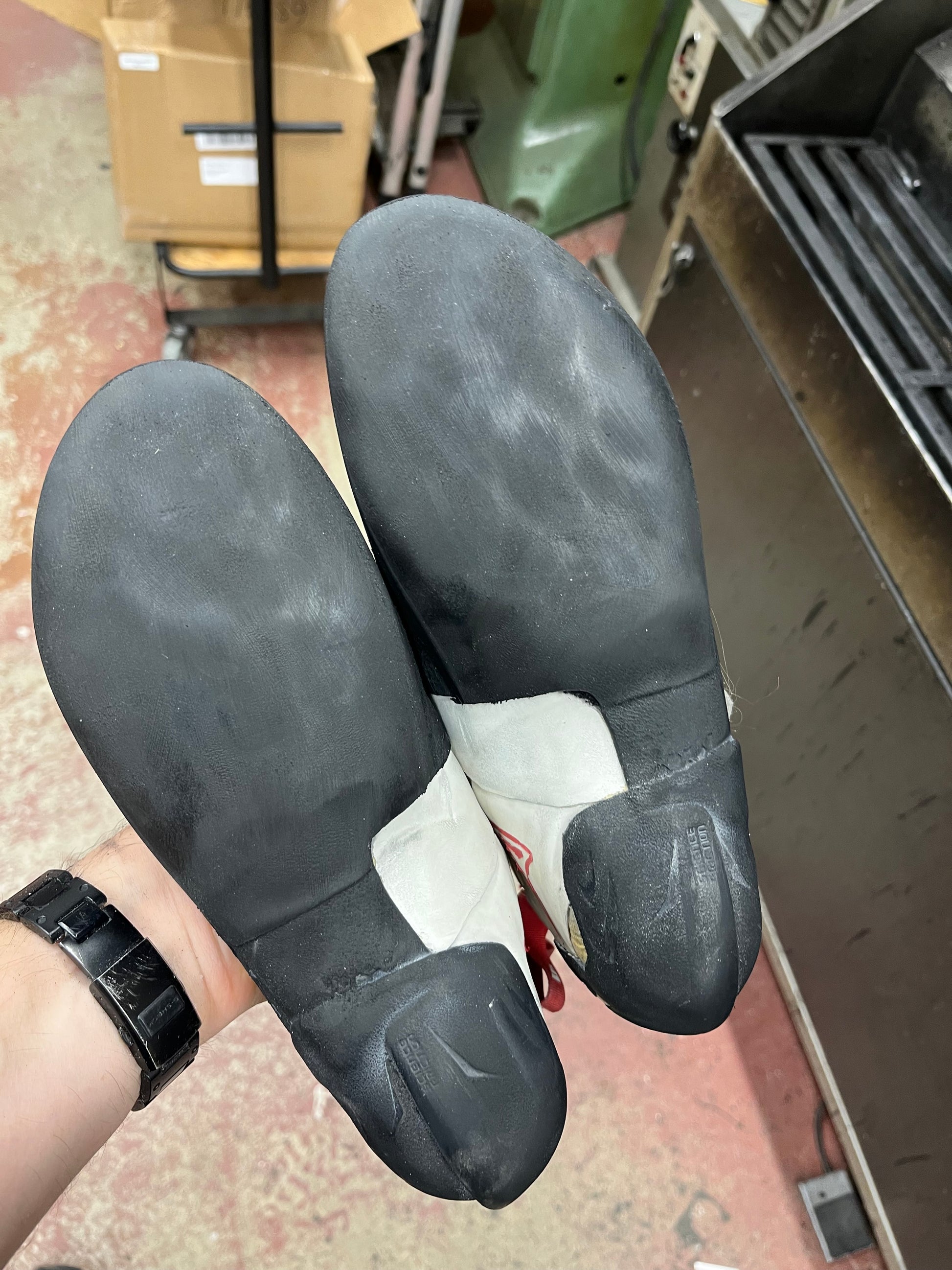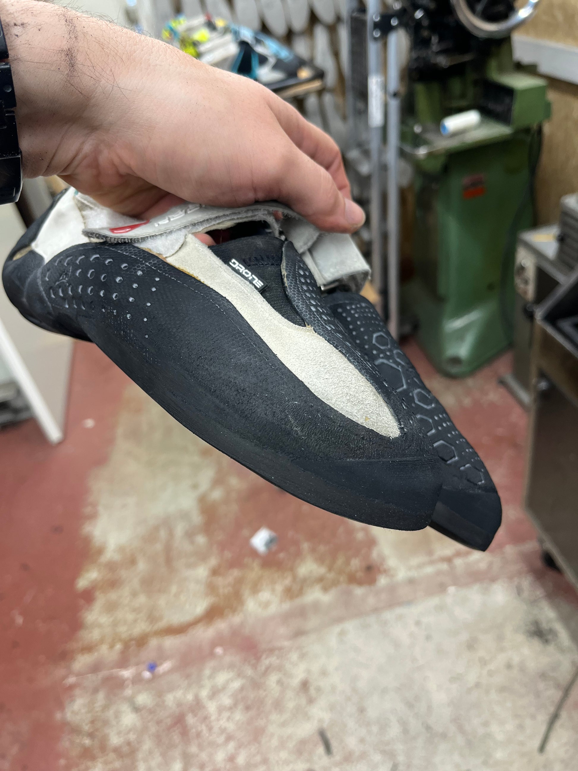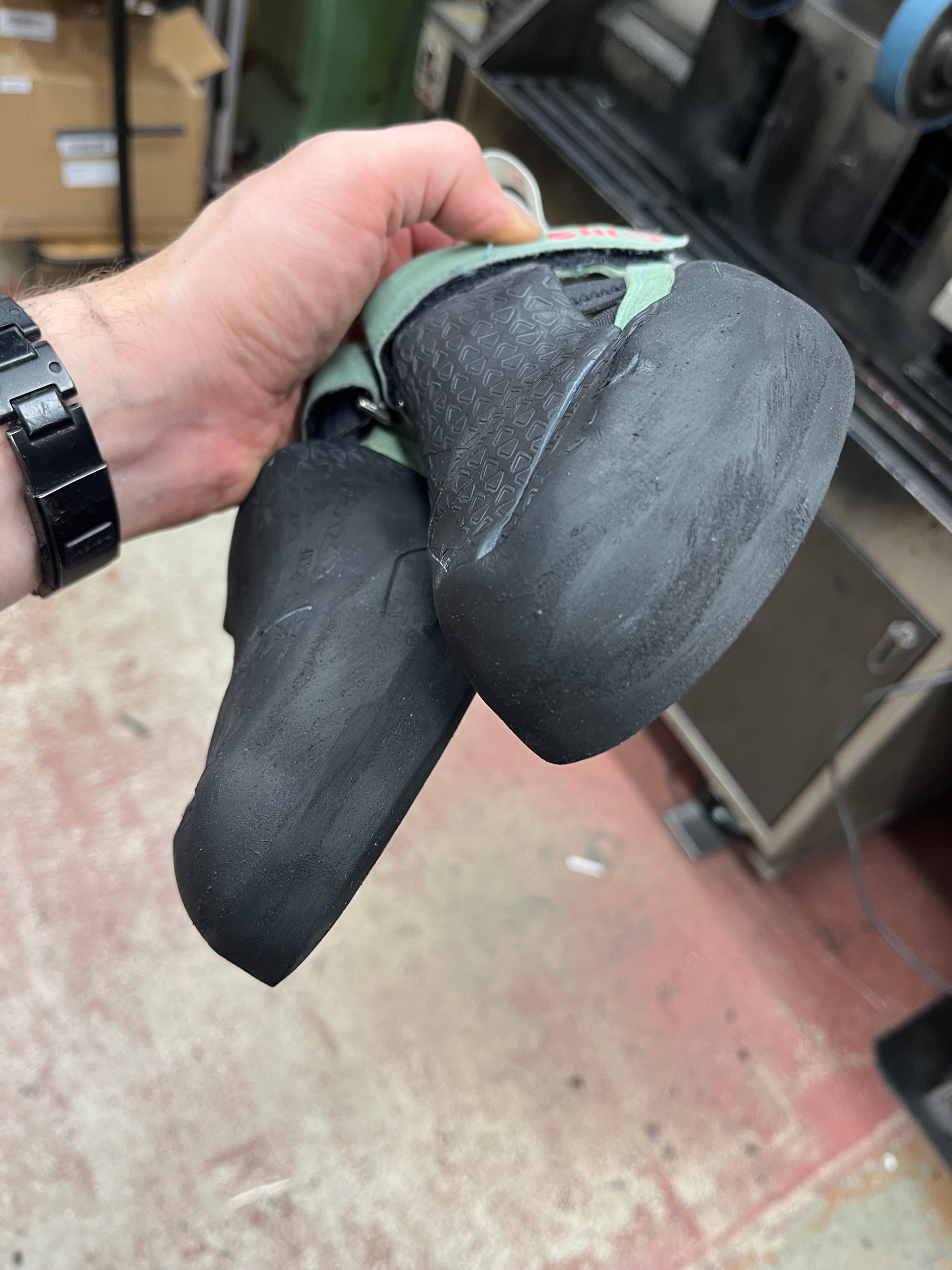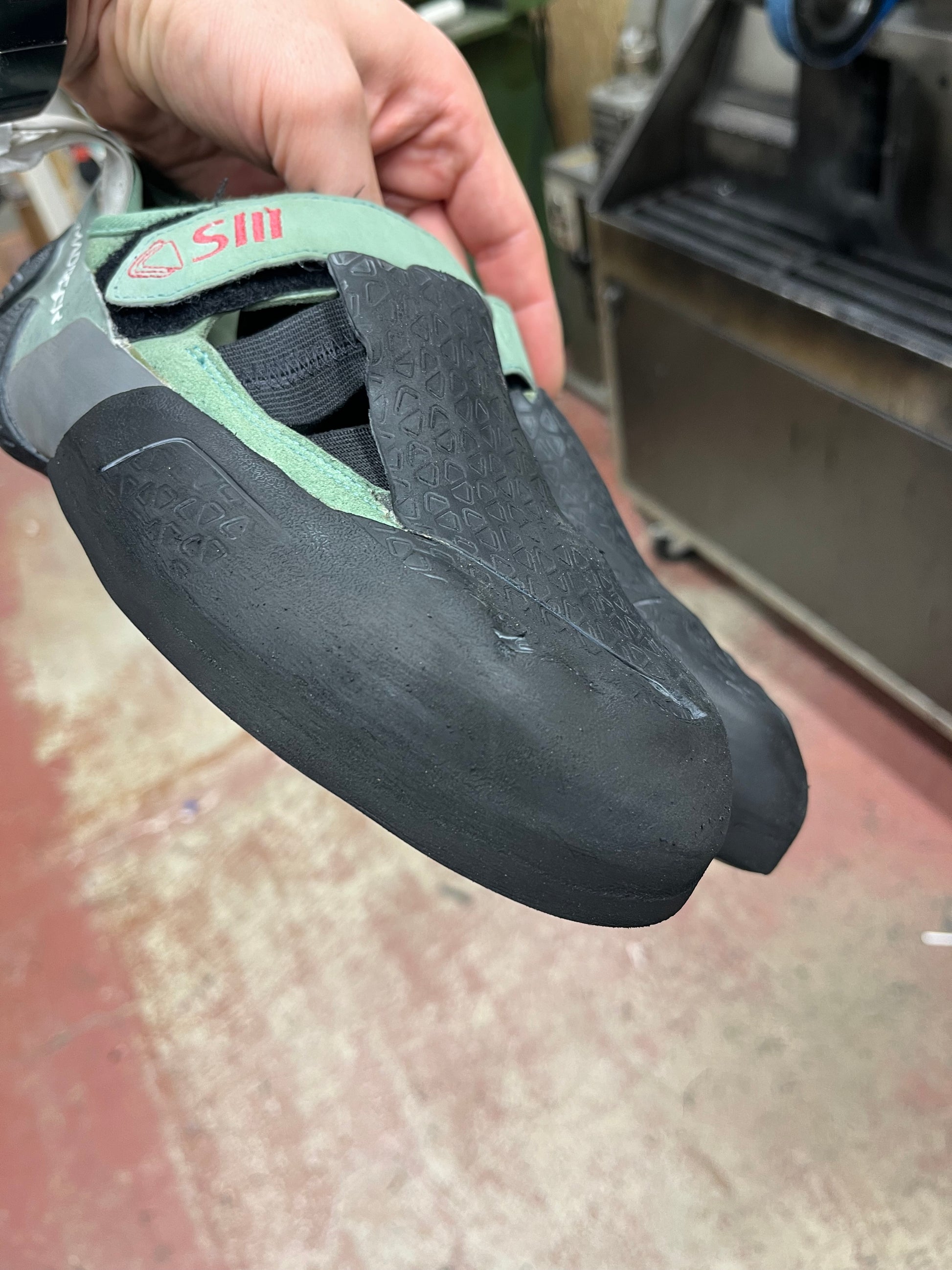 Kiipeilykenkien puolipohjaus Mad Rock SF3 kumilla.